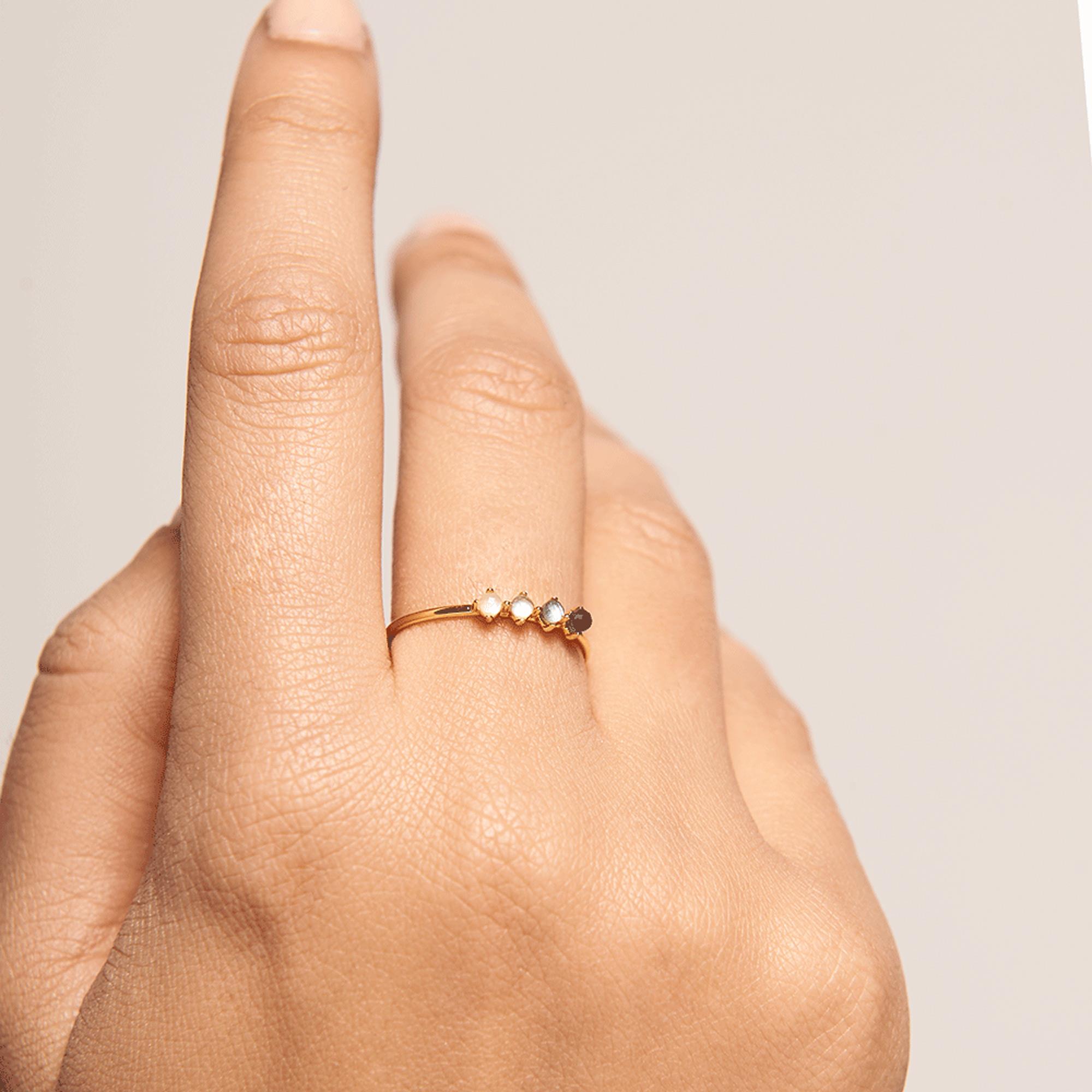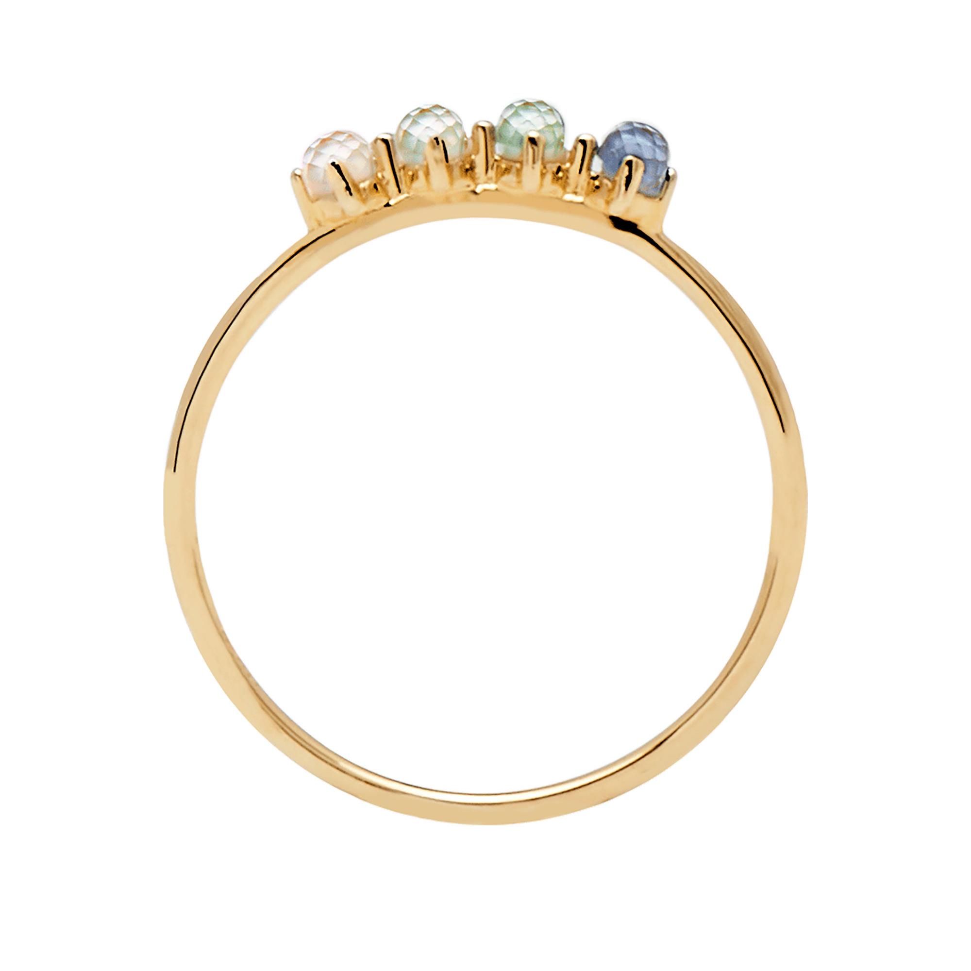 Questo elegante e minimale anello, sommerso in serenità e delicatezza, è l’amuleto definitivo da indossare ogni giorno. Un modello fatto di Argento Sterling 925 e placcato in Oro 18k fa da base, mentre dei brillanti cristalli azzurri si poggiano su di una base di Madreperla naturale. Un gioiello che abbraccia la sensibilità e l’etereo in una collezione immersa in un’area mistica e pacifica. Gioielli prêt-à-porter rifiniti a mano, una vera collezione di pezzi artigianali che utilizzano materiali di prima qualità e pietre semipreziose.
