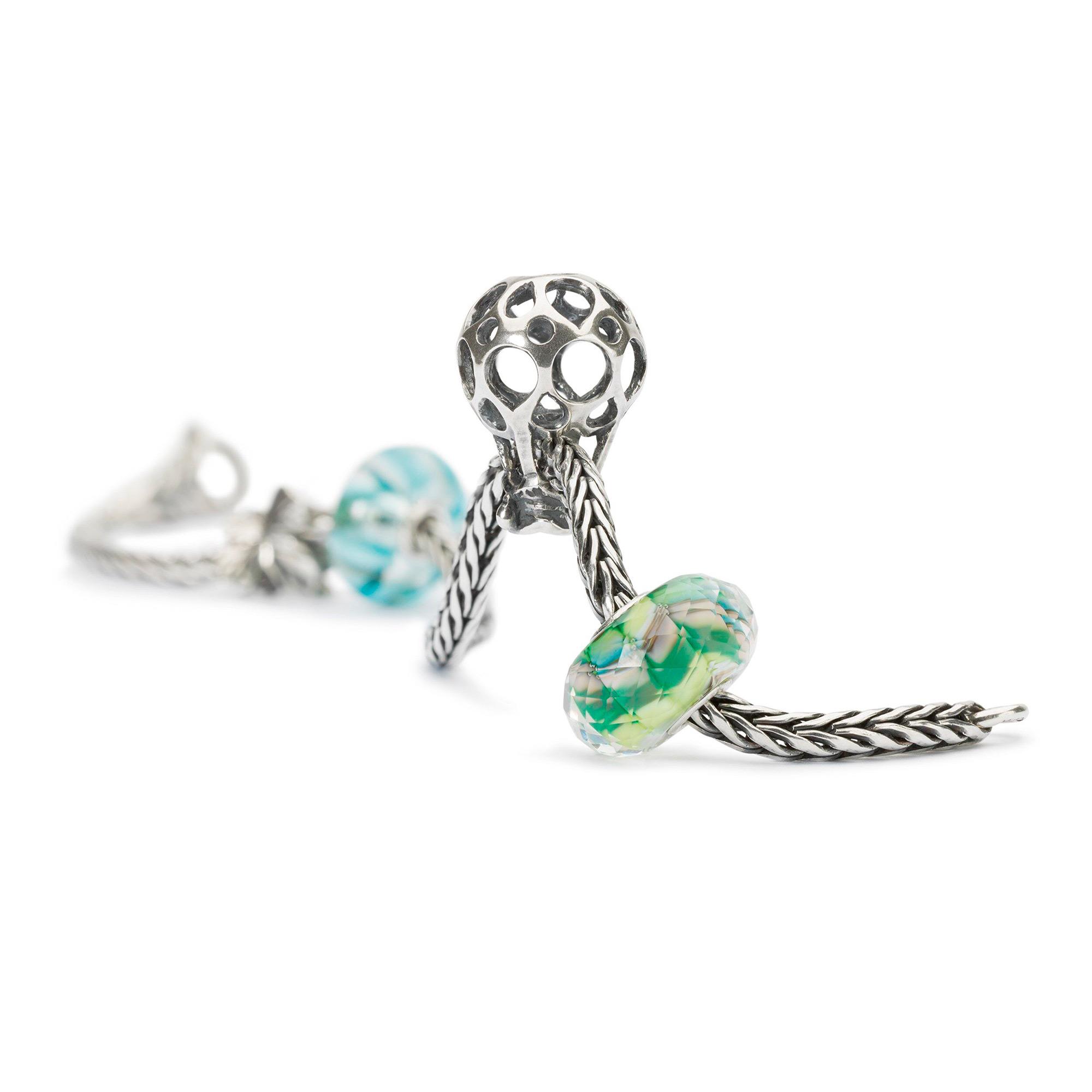 Bead per bracciale componibile Trollbeads. Realizzato in argento. Simboleggia la frase "Per levarti in aria devi lasciare andare ciò che ti sta trattenendo".