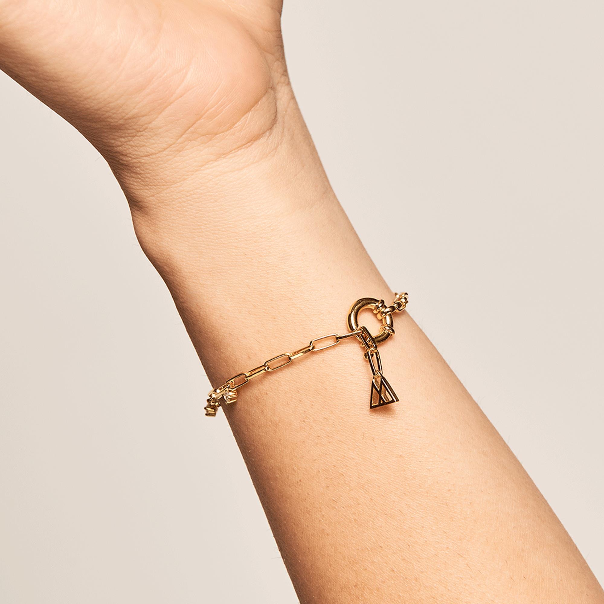 Abbracciando la sofisticatezza in un ambiente selvaggio e misterioso, il bracciale in Oro Gina è l’unione di delicatezza e carattere in un design cosmico e brillante. Una fusione eclettica di eterne scintille e ferme catene di libertà: zirconi meticolosamente incastonati a mano in una base di argento sterling 925 e una placcatura in oro 18 carati. Un design ricolmo di moderno minimalismo in una collezione che rappresenta l’eterna dualità della donna di oggi: libera, sognatrice e lottatrice. Gioielli prêt-à-porter rifiniti a mano, una vera collezione di pezzi artigianali che utilizzano materiali di prima qualità e pietre semipreziose. Spessore catenina: 0,8 mm. Lunghezza catenina: 14 e 17 cm (2 chiusure).