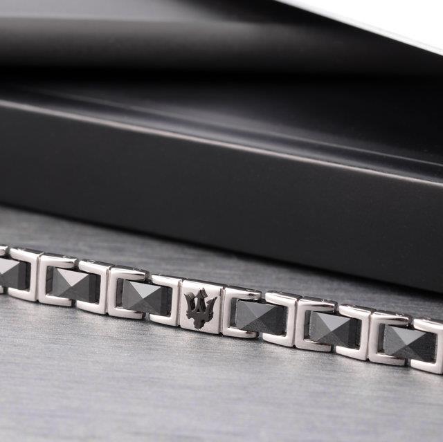 Prodotto: bracciale uomo gioielli Maserati JM420ATI07.Bracciale da uomo di maserati. Gioiello realizzato in acciaio e ceramica della lunghezza di 220 mm. Questo articolo verrà spedito con Scatola Originale Maserati se prevista dal brand.