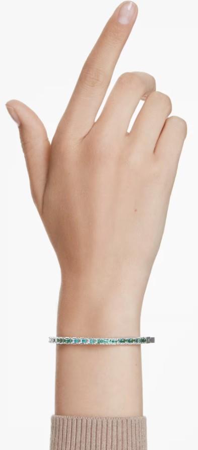 Accendi il tuo look quotidiano con questo bangle Matrix con cerniera. Il design placcato rodio è realizzato nell’emblematica forma ottagonale di Swarovski ed è decorato in modo giocoso con una sfumatura di Swarovski Zirconia verdi taglio Baguette incastonate orizzontalmente. Perfetto da abbinare ad altri bangle Matrix, è un tripudio del colore distintivo di Swarovski per esprimere al meglio la tua personalità più vivace.