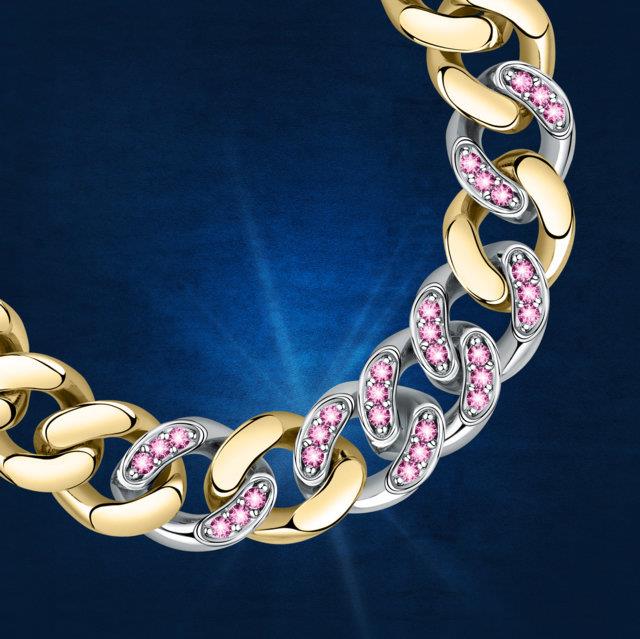 racciale Chiara Ferragni Brand Chain - J19AUW51 - Genere: Donna, Misura : 170+25mm cm, Colore: Dorato, Bluespirit experience: Fashion, Materiale: Cristalli, Colore pietra: Rosa, Pietra: Zirconi, Certificato di autenticità: Sì, Confezione: Originale Chiara Ferragni Brand
