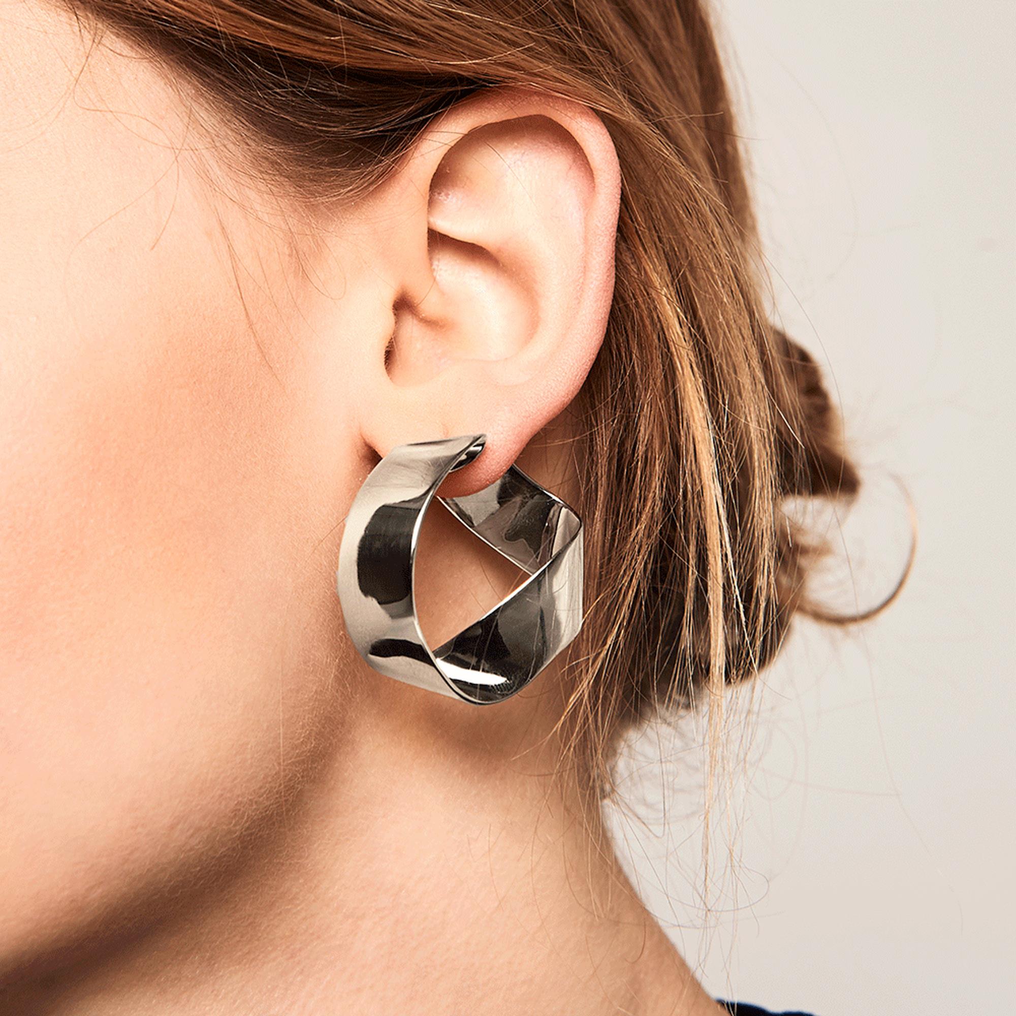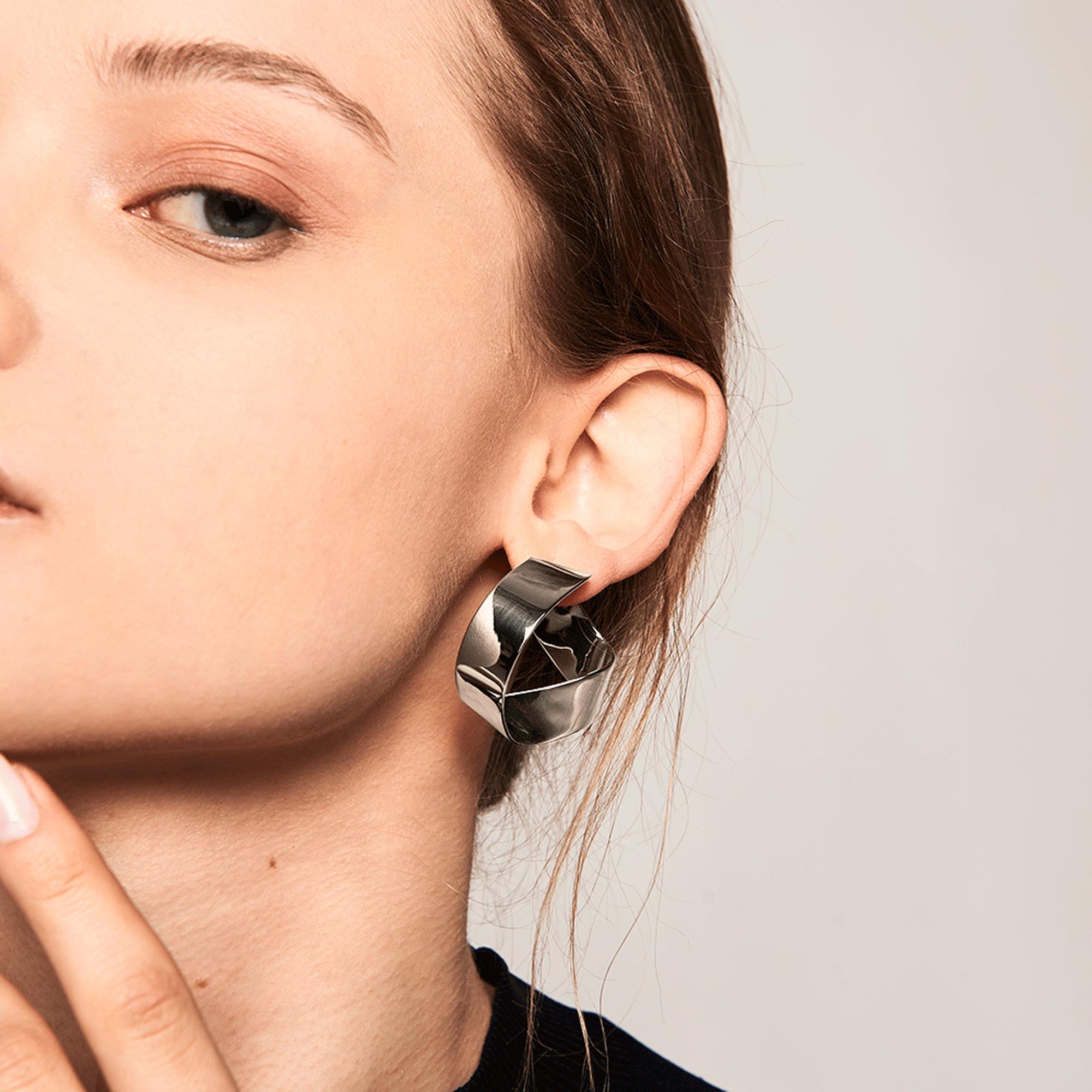 La bellezza si fonde con l'emozione in un design ispirato dai disegni del cielo, creando onde asimmetriche che circondano le orecchie. Gli orecchini in argento rifiniti a mano Gravity formano un cerchio imperfetto con una finitura unica. Progettiamo e realizziamo gioielli prêt-à-porter rifiniti a mano, una vera collezione di pezzi artigianali che utilizzano materiali di prima qualità e pietre semipreziose. Diametro totale del cerchio: 3.5 cm. Larghezza: 1 cm. Peso: 8 g.