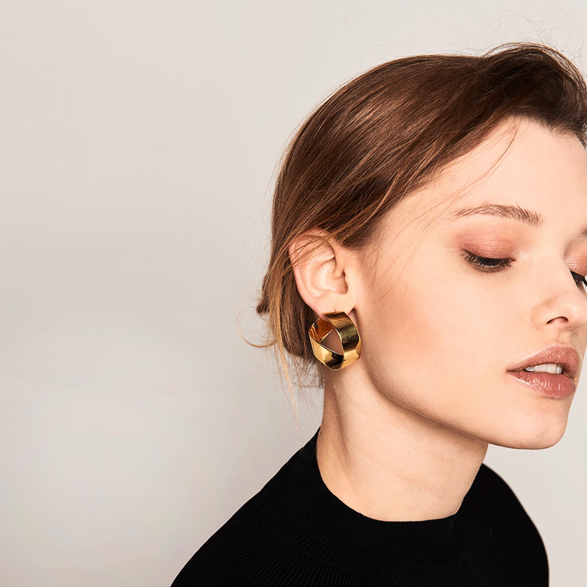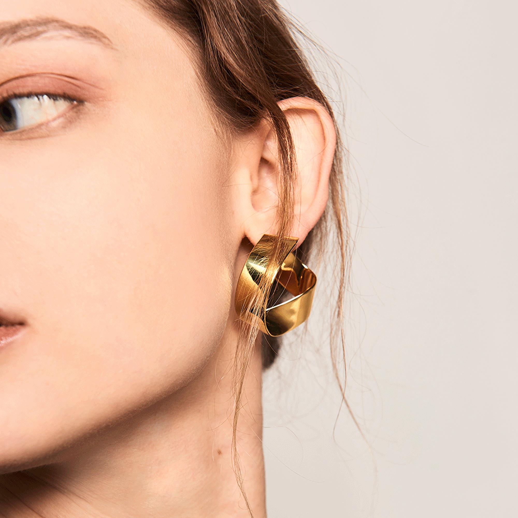 La bellezza si fonde con l'emozione in un design ispirato dai disegni del cielo, creando onde asimmetriche che circondano le orecchie. Gli orecchini in oro rifiniti a mano Gravity formano un cerchio imperfetto con una finitura unica. Gioielli prêt-à-porter rifiniti a mano, una vera collezione di pezzi artigianali che utilizzano materiali di prima qualità e pietre semipreziose.