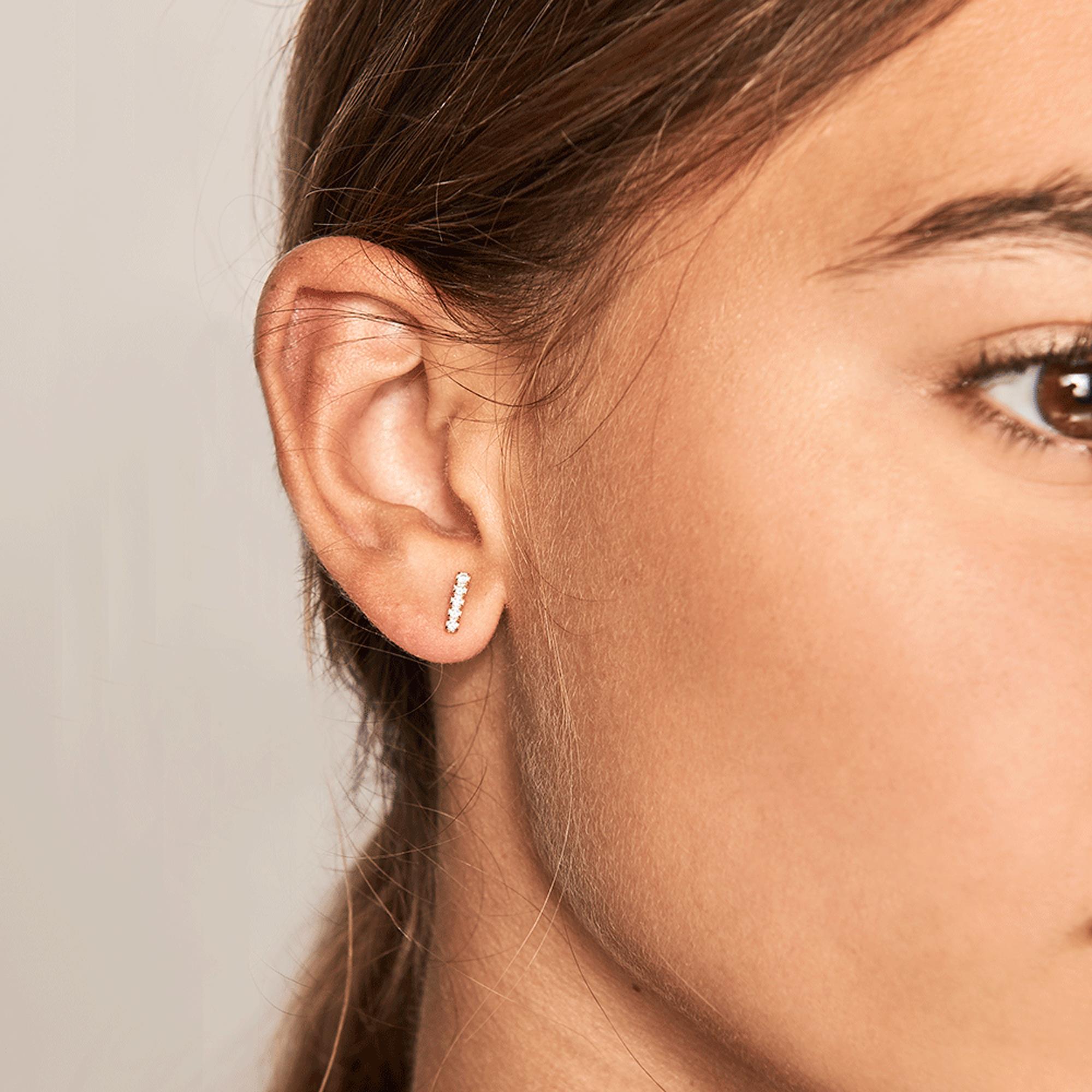 Abbracciando la sofisticatezza in un ambiente selvaggio e misterioso, gli orecchini in Oro Kira sono l’unione di delicatezza e carattere in un design cosmico e brillante. Scintille eterne in un gioiello elegante e pregiato. Un gioiello formato da zirconi meticolosamente incastonati in una base di argento sterling 925 ed una placcatura in oro 18 carati danno come risultato un design ricolmo di moderno minimalismo in una collezione che rappresenta l’eterna dualità della donna di oggi: libera, sognatrice e lottatrice. Gioielli prêt-à-porter rifiniti a mano, una vera collezione di pezzi artigianali che utilizzano materiali di prima qualità e pietre semipreziose. Sistema di chiusura: Vite tradizionale. Lunghezza: 1,2 cm. Peso: 0.78g.