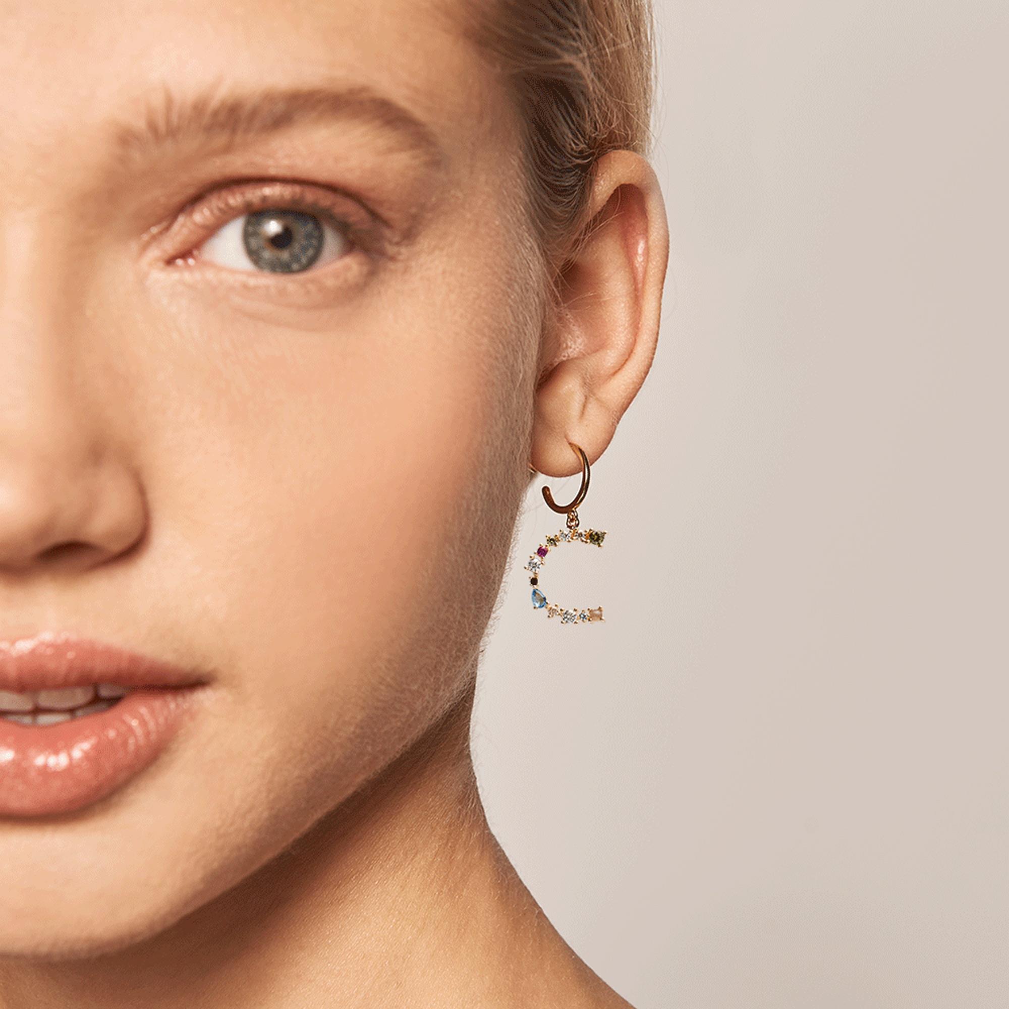 Dietro di ogni nome c’è una storia, un’anima. Le Ear Stories della I AM Collection sono una forte affermazione: un intrepido sussurro che richiama all’unicità e alla sua bellezza intrinseca, rappresentata attraverso l’eccezionalità del design e dei particolari in ogni lettera. Come sofisticata affermazione di amor proprio ed emancipazione, questa collezione è un promemoria quotidiano di forza, fiducia e coraggio. La I AM Collection abbraccia la femminilità costruita sulle credenze forti. Labradorite, acquamarina e svariate sfumature di zirconi sono i protagonisti di questi gioielli talismanici. Pezzi delicati in cui le pietre semipreziose sono state ritagliate a mano per ogni lettera, forma e dimensione. Una grande maestria circonda questi orecchini; ogni pietra è incastonata a mano su una base in Argento Sterling 925 con placcatura in oro a 18k. L’esclusività di ogni lettera è l’essenza di I AM, un gioiello che ti riafferma: il modo definitivo di dichiarare con orgoglio quanto tu o i tuoi cari siano speciali. Orecchini assimmetrici: 1 Orecchino con Lettera più 1 Orecchino basico. Materiale: Argento Sterling 925. Finitura: Placcatura in Oro 18k. Pietre: Labradorite, Acquamarina, Zircone Blue Spinel, Zircone Light Champagne, Zircone Green Peridot, Zircone London Blue, Zircone Rose Red, Zircone Nero, Zircone Bianco. Diametro del cerchio: 12 mm. Sistema di chiusura: Vite tradizionale. Peso: 1.90 g.