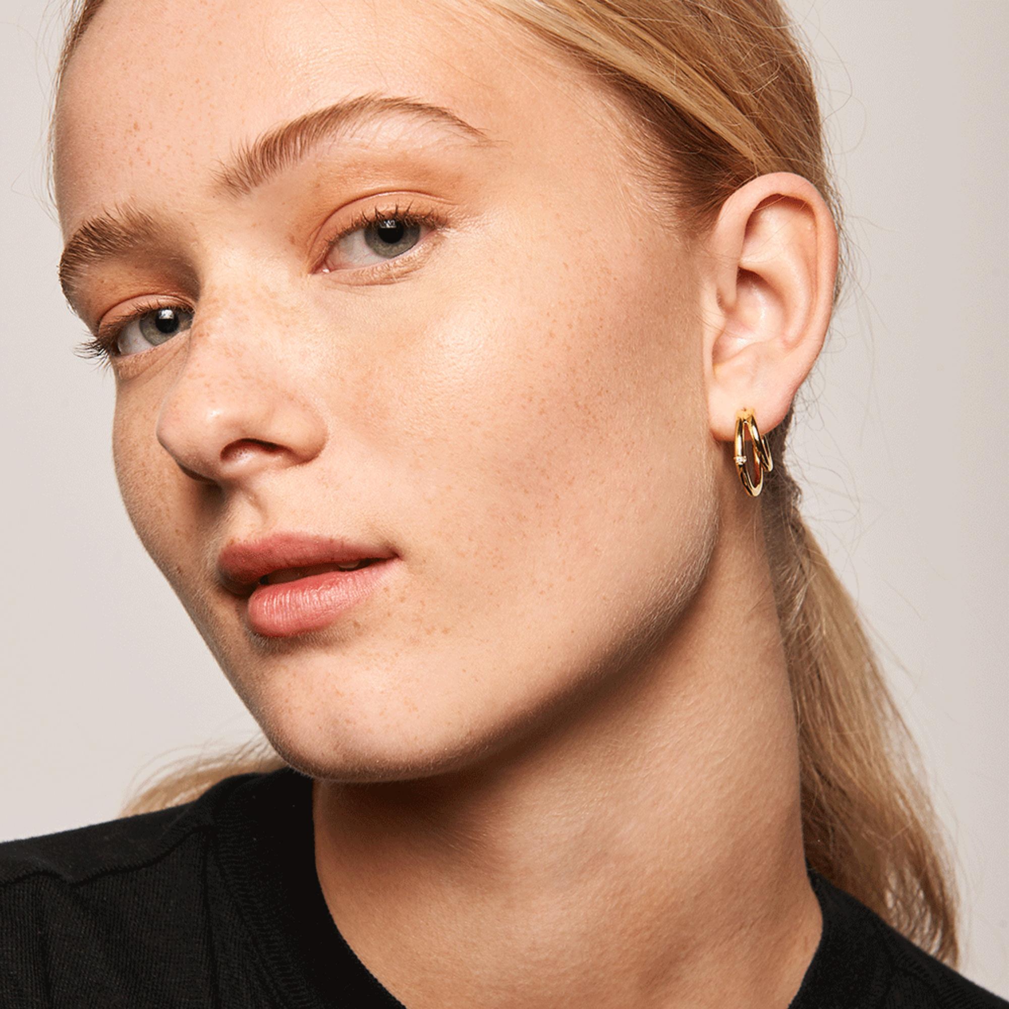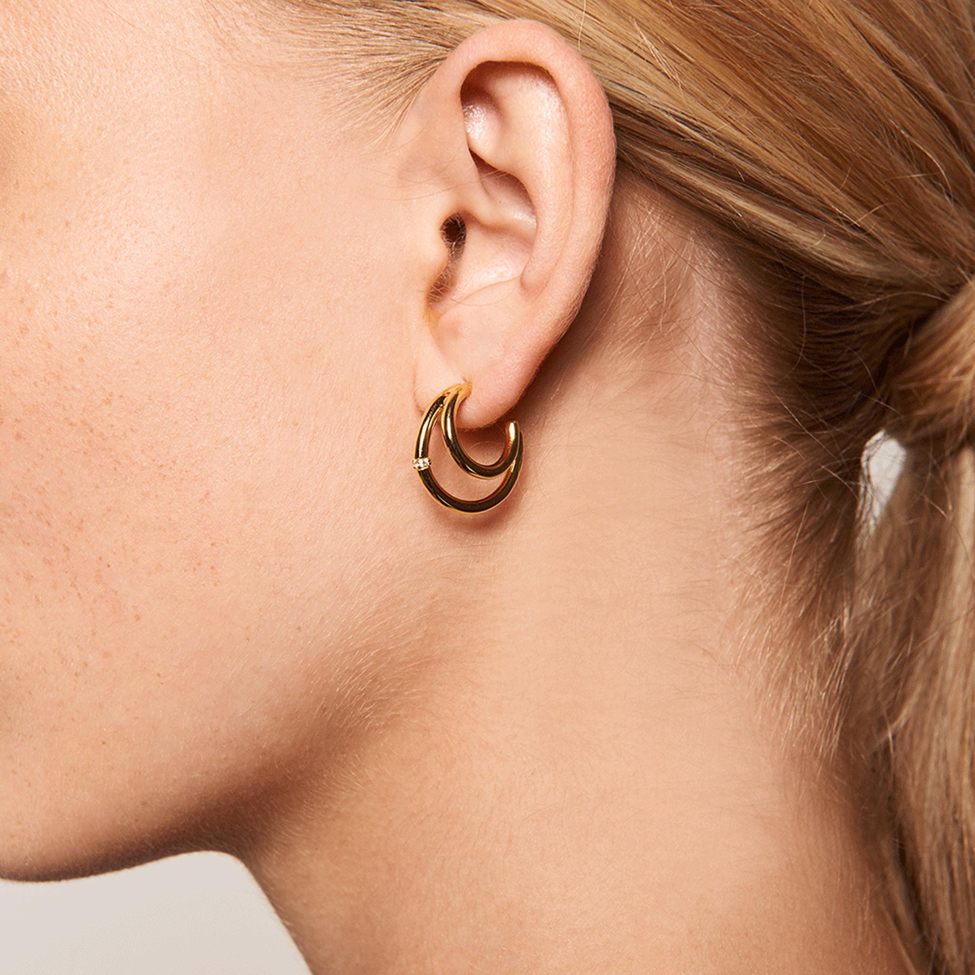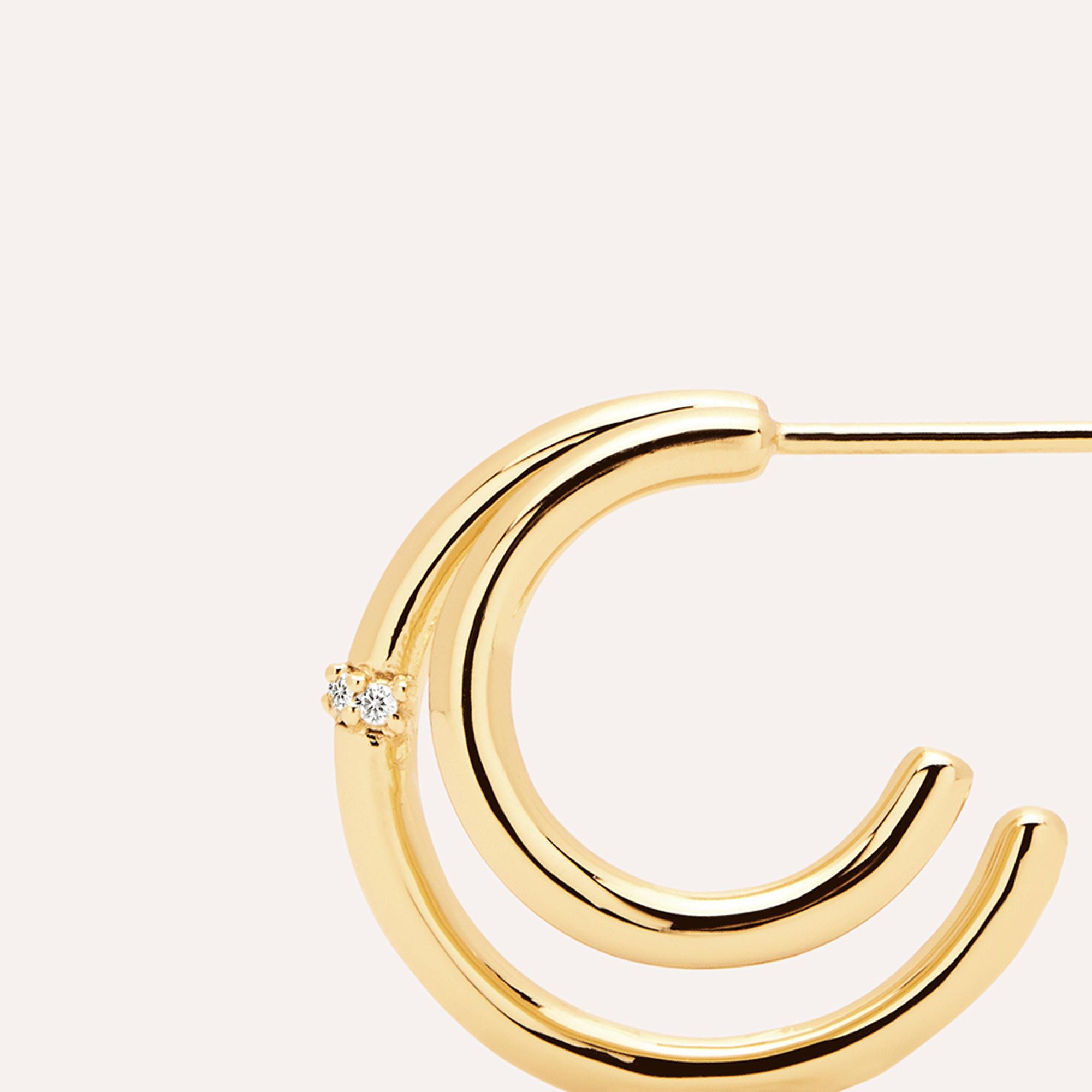 L’orecchino Solstice Gold é in assoluto l’articolo di massima grazia e vivacità. Due cerchi in argento sterling 925, placcati in oro 18k, sono appositamente lucidati a mano e impreziositi da bianche zirconie. Un design intriso dell'atmosfera delle celebrazioni della costa mediorientale. Raffinato ma sauvage, le sue forme organiche riflettono un atteggiamento di permanente audacia e eleganza. Gioielli prêt-à-porter rifiniti a mano, una vera collezione di pezzi artigianali che utilizzano materiali di prima qualità e pietre semipreziose. Tipo di chiusura: A chiodo classica. Diametro del cerchio: 20 mm. Peso: 5.6 g.
