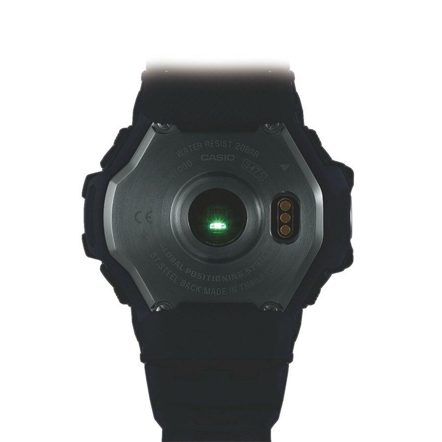 Un sensore ottico sul retro della cassa dell'orologio utilizza LED per misurare la frequenza cardiaca al polso. I valori determinati vengono visualizzati sull'orologio.