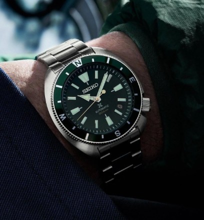 L'orologio Seiko Tortoise SRPH15K1 è carico di verde (lunetta, quadrante), ravvivato dalla sfera secondi dorata. Presenta una cassa in di 42,4 mm per 11,7 mm di spessore e un'impermeabilità fino a 200.