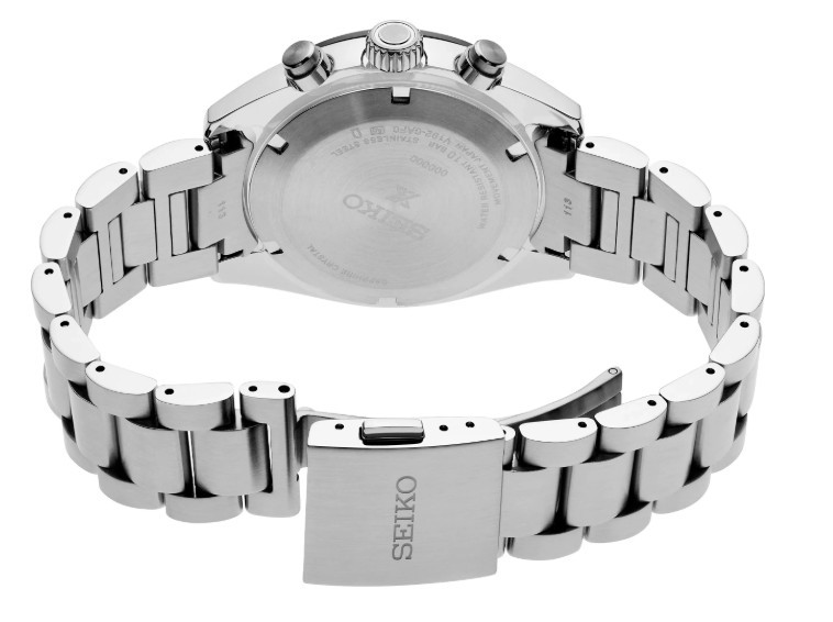 Movimento cronografico al quarzo a carica solare fino a 60 minuti, in unità di quinti di secondo - Misurazione dei tempi parziali - Data - Contatore con piccoli secondi - 6 mesi di riserva di carica - Indicatore della riserva di energia - Funzione di avvertimento di esaurimento di energia - Funzione di prevenzione di sovraccarica - Cassa e bracciale in acciaio inossidabile - Vetro zaffiro bombato con trattamento antiriflesso sulla superficie interna - Indici e sfere con Lumibrite - Fondello a vite - Lunetta con trattamento IP nero e scala tachimetrica - Chiusura déployante con pulsante di rilascio - Impermeabilità 10 bar - Diametro cassa 39 mm - Spessore cassa 13,3 mm